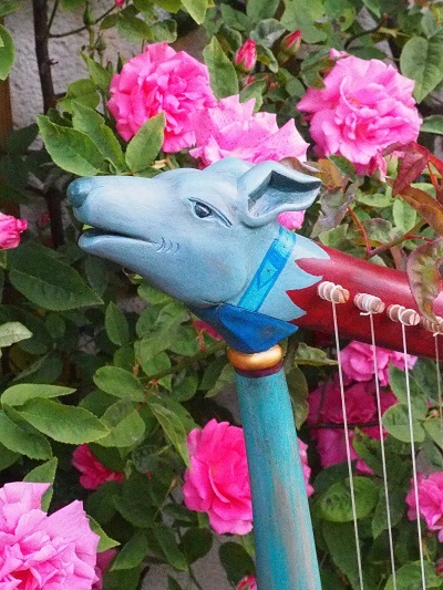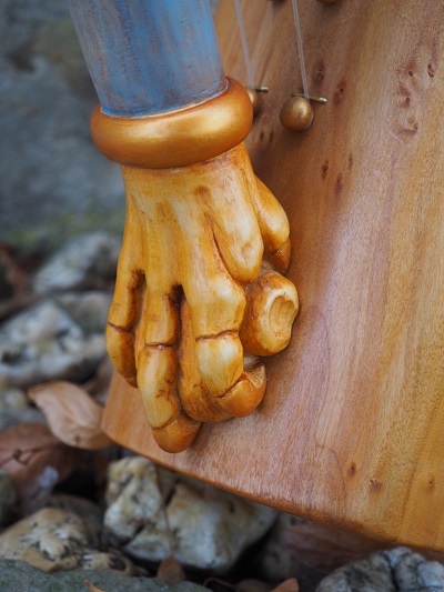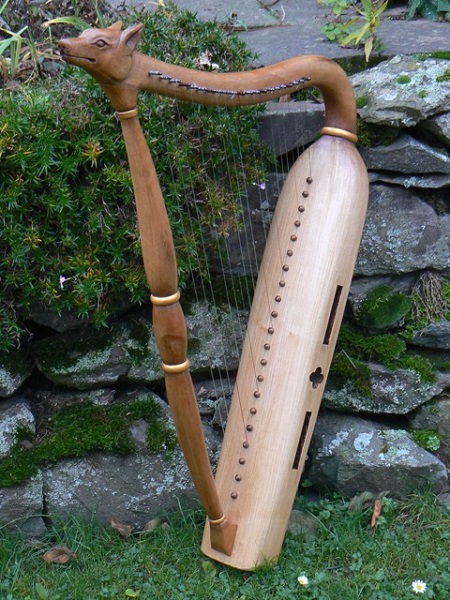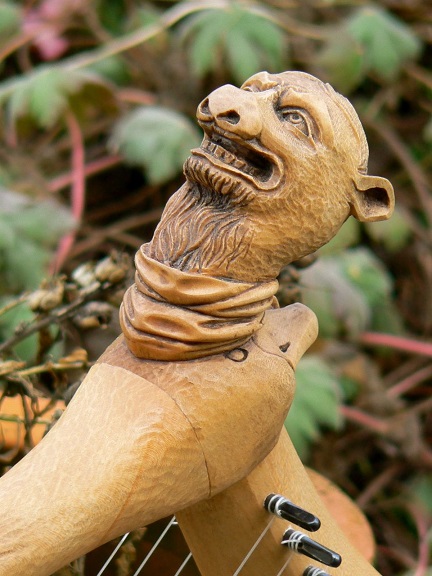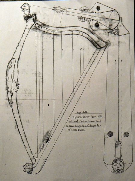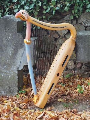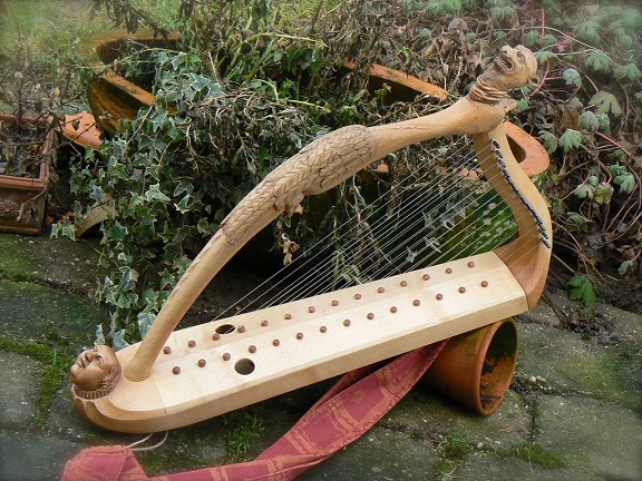 Die Harfe habe ich nach einer Darstellung in einer Handschrift des Klosters St. Blasien im Schwarzwald, entworfen. Mit romanischem Dekor ausgestattet entspricht die Harfe dem Zeitgeist des 9.-11. Jahrhunderts.