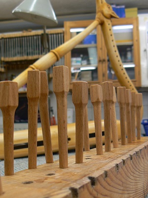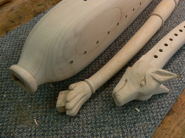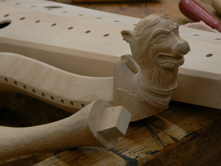 Das Instrument fertige ich der bildlichen Vorlage entsprechend mit parallel laufendem 16 -saitigem Bezug. Der doppelchörige Saitenbezug kann nach Wunsch des Spielers auch chromatisch eingestimmt werden. Somit bietet dieses Modell für den Musiker viele experimentelle Möglichkeiten in der alten Musik.