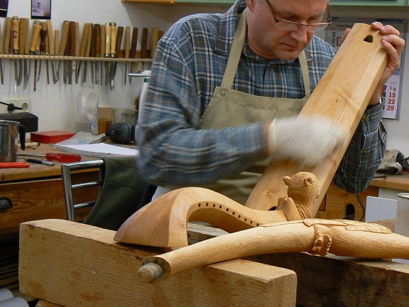 Das in seinem Sinn noch nicht identifizierte Motif des Schnitzwerks dürfte eine Sage jener Zeit darstellen.